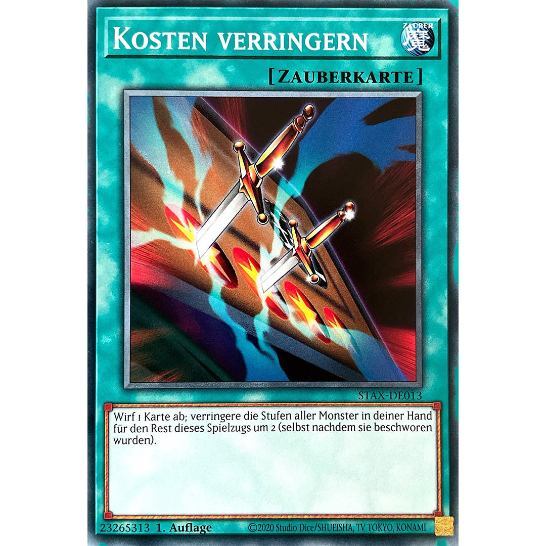 Wirf 1 Karte ab; verringere die Stufen aller Monster in deiner Hand für den Rest dieses Spielzugs um 2 (selbst nachdem sie beschworen wurden).