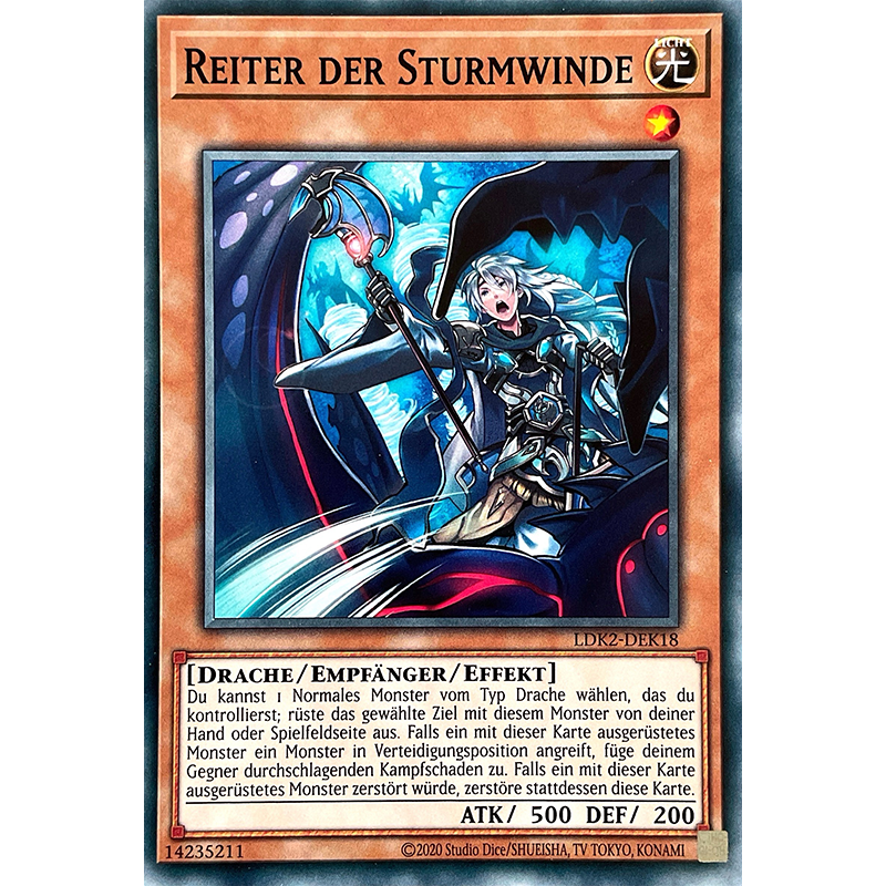 Du kannst 1 Normales Drache-Monster wählen, das du kontrollierst; rüste das gewählte Ziel mit diesem Monster von deiner Hand oder Spielfeldseite aus. Falls ein mit dieser Karte ausgerüstetes Monster ein Monster in Verteidigungsposition angreift, füge deinem Gegner durchschlagenden Kampfschaden zu. Falls ein mit dieser Karte ausgerüstetes Monster zerstört würde, zerstöre stattdessen diese Karte.