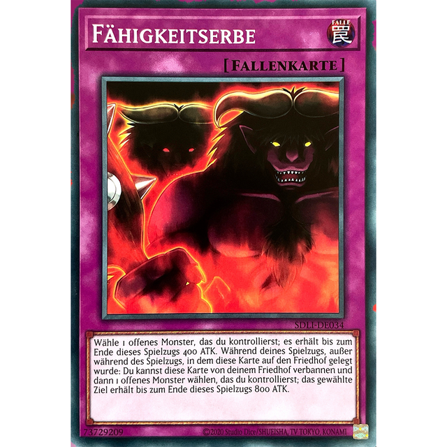 Wähle 1 offenes Monster, das du kontrollierst; es erhält bis zum Ende dieses Spielzugs 400 ATK. Während deines Spielzugs, außer in dem Spielzug, in dem diese Karte auf den Friedhof gelegt wurde: Du kannst diese Karte von deinem Friedhof verbannen und dann 1 offenes Monster wählen, das du kontrollierst; jenes gewählte Ziel erhält bis zum Ende dieses Spielzugs 800 ATK.