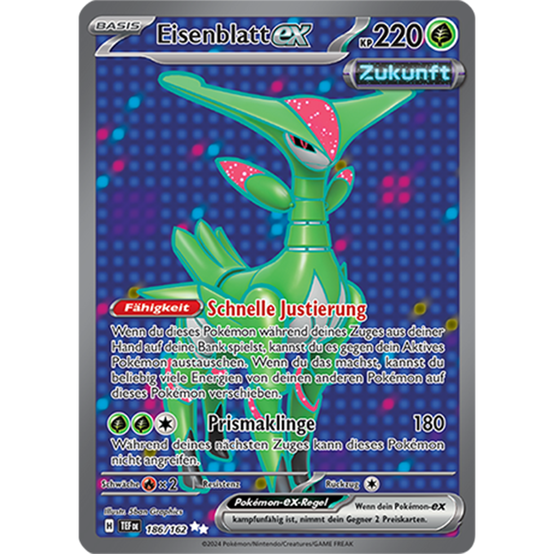 Bei dieser Karte handelt es sich um eine Full Art Eisenblatt ex Karte aus dem Set Gewalten der Zeit.