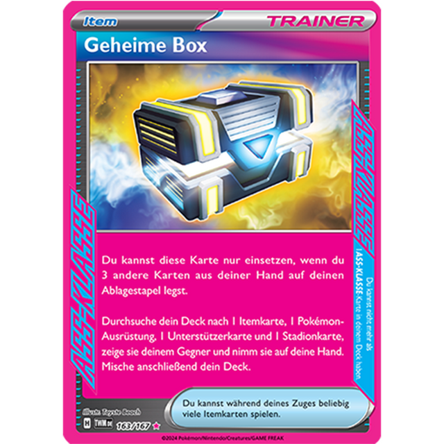 Bei dieser Karte handelt es sich um eine Ass Klasse Geheime Box Karte aus dem Set Maskerade im Zwielicht.